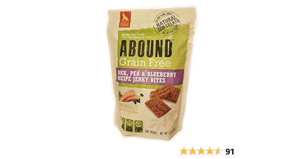Amazon Com Abound Grain Free Duck Pea Blueberry Recipe Jerky Bites Dog Treat 12 Oz Pet Supplies